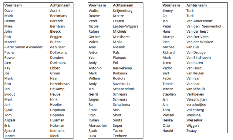 Alle ingeschreven rijders staan in onderstaande overzicht.